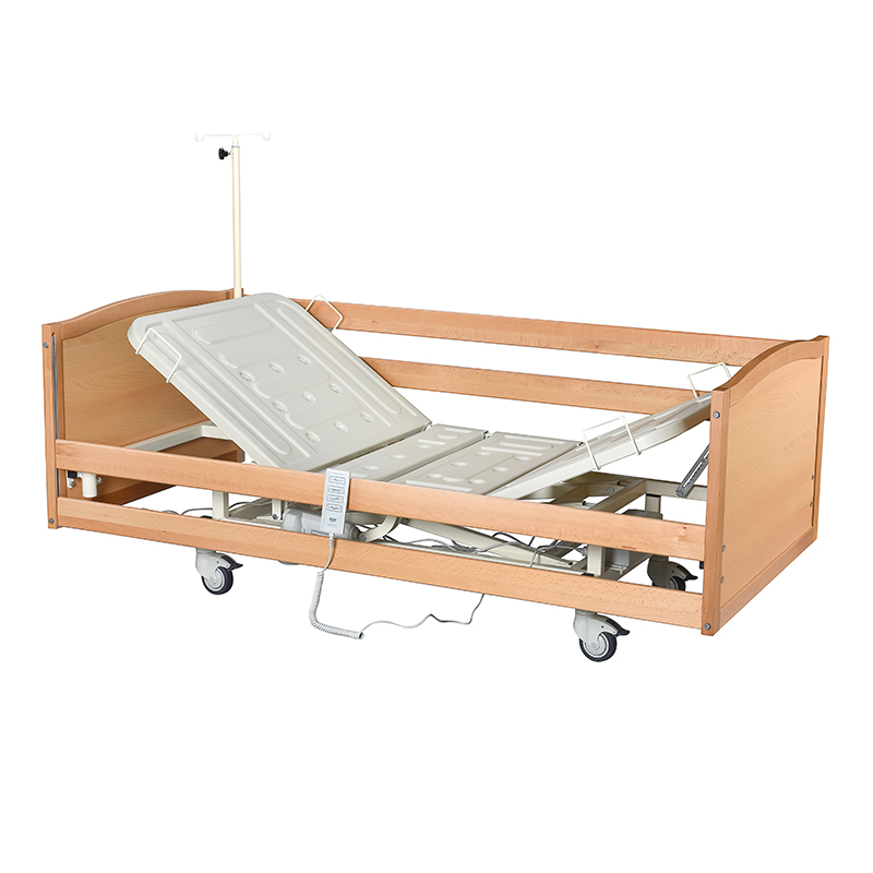ABS yanlıklı 3 motorlu hasta yatağı, baş, sırt ve ayak kısımlarının ayrı ayrı hareket ettirilebildiği, antibakteriyel ABS malzemeden üretilmiş yan korkuluklara sahip modern bir hasta yatağı modelidir.